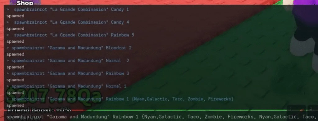 - Type the spawn command to generate a Secret Brainrot.