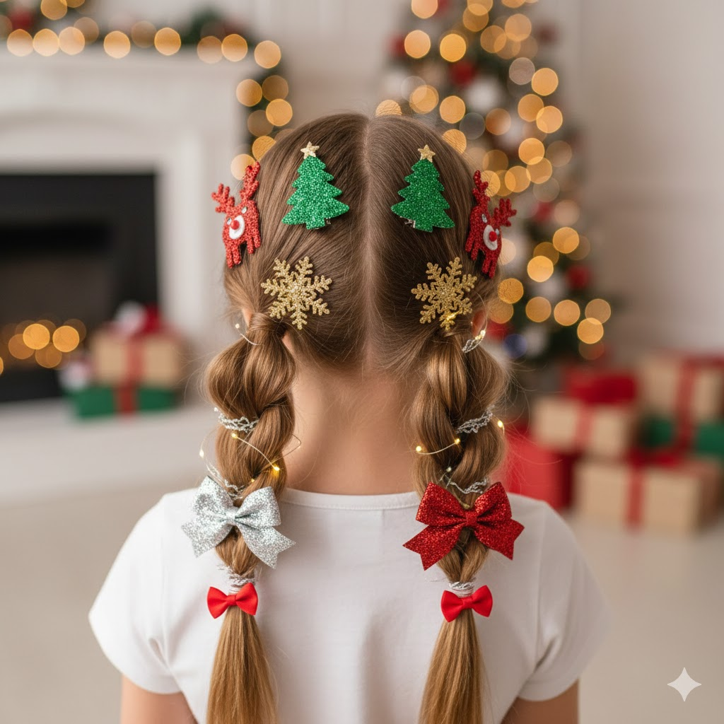 - Christmas-Themed Hair Clips – Star, snowflake, or candy cane clips for loose hair.
